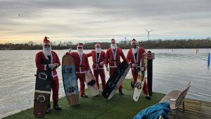 Nikoläuse gehen ins Wasser Am 08.12.2024 trafen sich die Wassersportler zum Jahresende in Beckum, um bei 6°C nochmal auf die Bretter und das Wasser zu